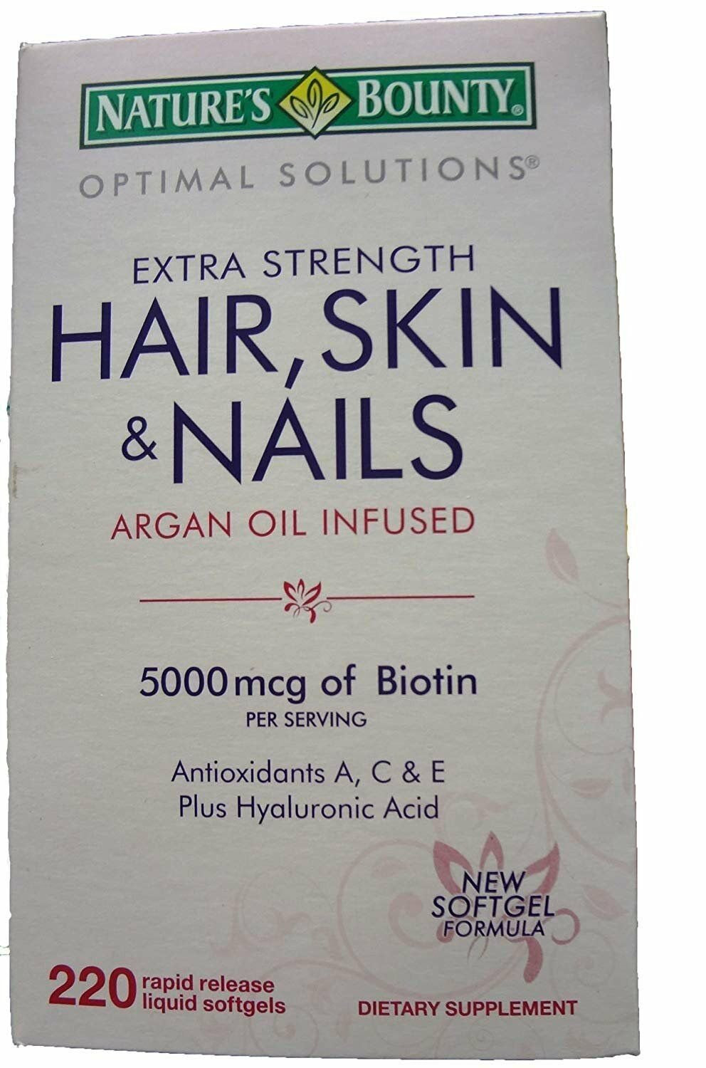 Nature'S Bounty Optimal Solutions Extra Srength Hair Skin & Nails 5000 Mcg of Biotin, Softgels 150 Ea (Pack of 4) is backordered and will ship as soon as it is back in stock.