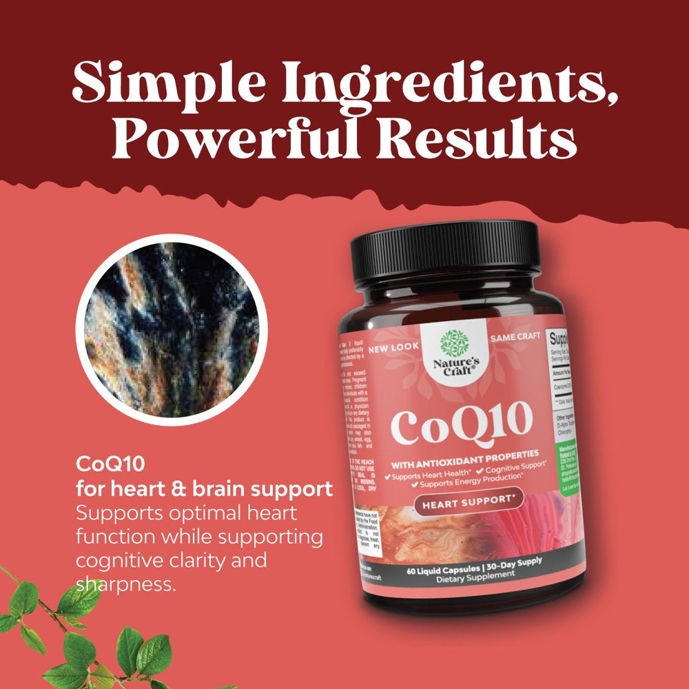 Nature'S Craft Coq10 Coenzyme Q10 200Mg per Serving Supplement to Support Heart Health and Energy - Natural Herbal Antioxidant for Anti-Aging Benefits and Skin Care 60Ct