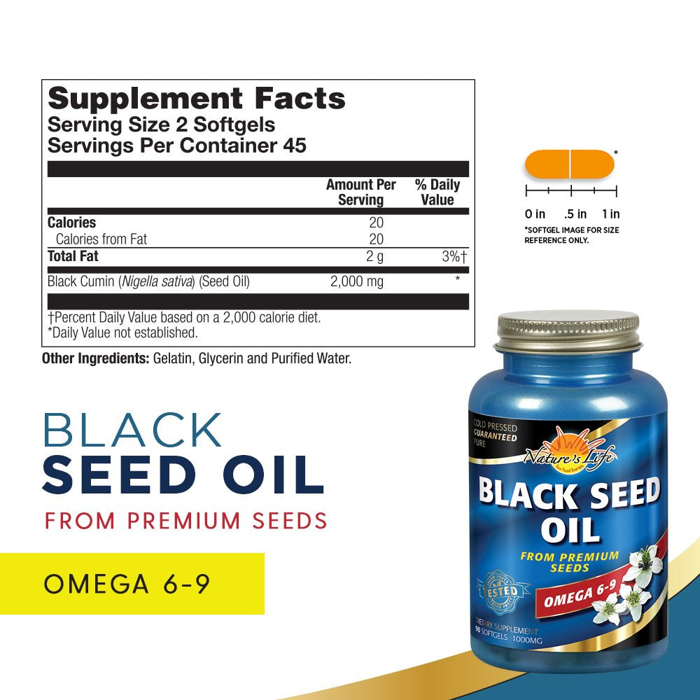 Cold pressed from premium seeds, Natures Life Black Seed Oil provides 1000 mg of the pure oil per two-softgel serving. Widely studied for its many health benefits, this nutrient-packed oil is an excellent addition to your daily supplement regimen.