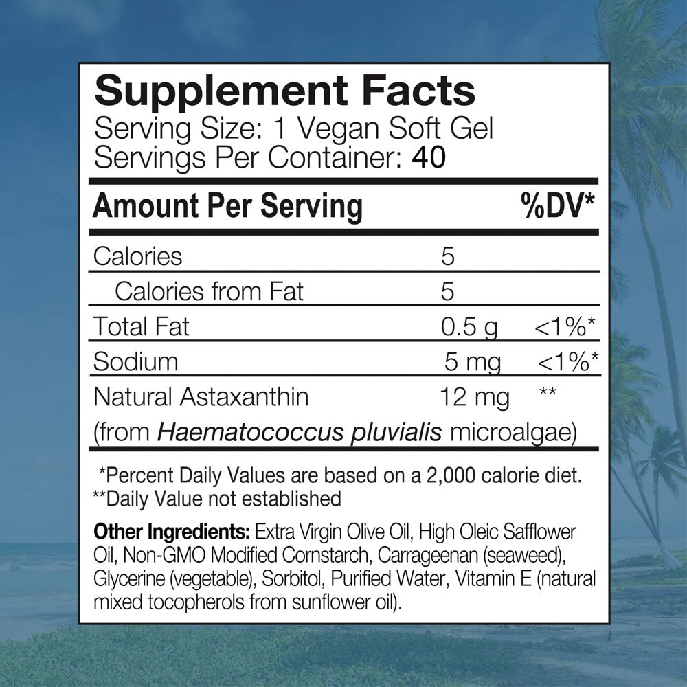 Maintain your overall health with vegan BioAstin Hawaiian Astaxanthin. Astaxanthin is a natural antioxidant derived from microalgae. It supports joint, skin and eye health and provides a wide range of other health benefits. BioAstin is grown on our Hawaiian farm situated in the BioSecure Zone on the Kona coast. Our farm uses natural sunlight, lava-filtered water and solar energy to make the purest, healthiest form of astaxanthin for the purest, healthiest you.
