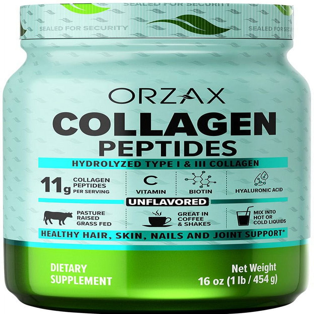 ORZAX Collagen Peptides Powder Unflavored - Hair, Skin and Nails Vitamins - Bone & Joint Support Supplement - Collagen Drink Mix - Collagen Powder for Women & Man (16Oz) - 1 is backordered and will ship as soon as it is back in stock.