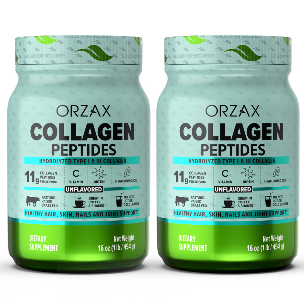 ORZAX Collagen Peptides, a powerhouse supplement designed to support your hair, skin, nails, and joint health. This formula brings together essential nutrients that benefit your hair, skin, nails, and joint health. Our Collagen Peptides with a generous 11g of type I and III collagen per serving. What sets our collagen apart is its versatility. Unflavored and odorless, it seamlessly blends into both hot and cold beverages, making it easy to incorporate into your daily routine. Customize your collagen regimen according to your preferences.