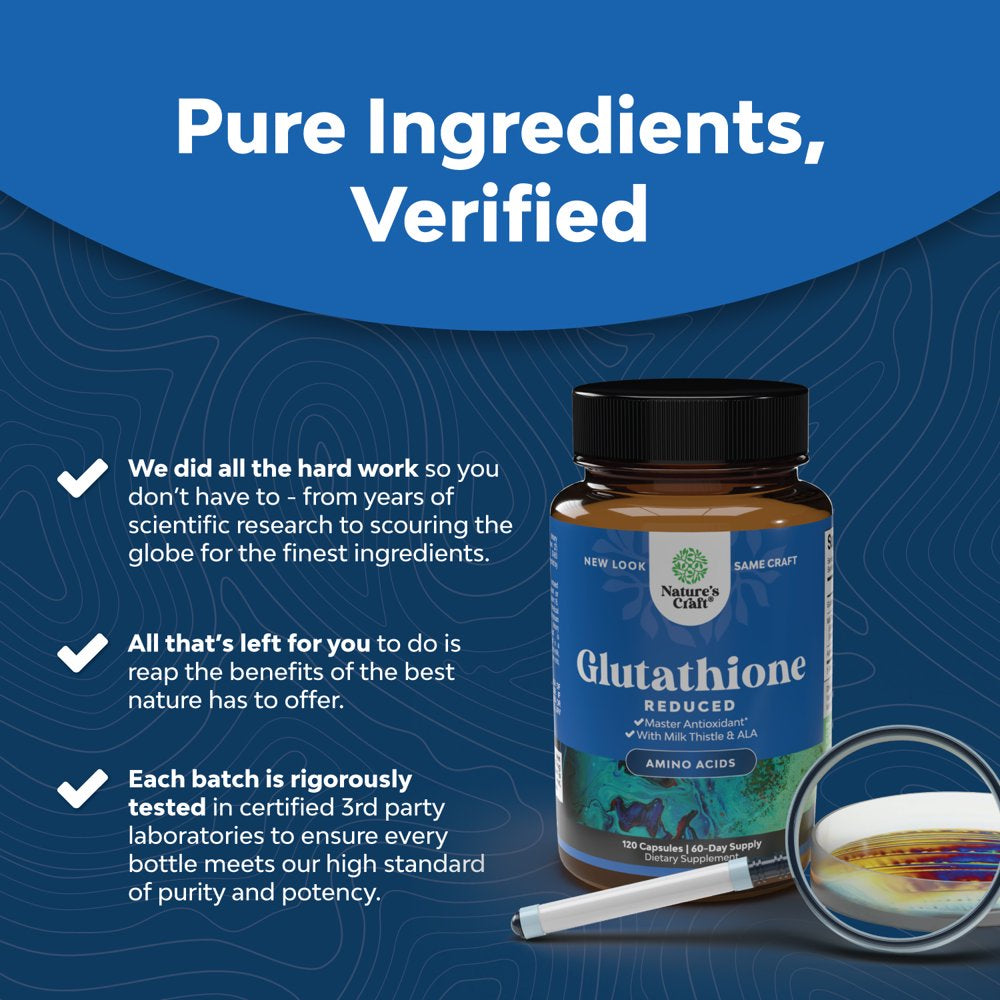Pure Glutathione Supplement with Glutamic Acid - L Glutathione Pills with Silymarin Milk Thistle Extract ALA and Amino Acid Complex for Liver Support anti Aging Skin Care Immunity - 120 Capsules