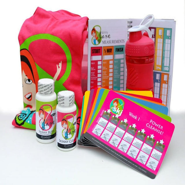 Looking for the Best Online Weight Loss Guide and Diet for Women?With The Skinny Jane 8 Week "Weight Loss Challenge" you can lose up to 35 pounds in just eight weeks! It includes the details and materials of the weight loss plan that has been carefully developed over 15 years of helping women lose weight and keep it off.Your Skinny Jane "8 Week Challenge" contains everything you need to lose weight and keep it off. The Skinny Jane materials will keep you motivated and on track so that you will reach your goal: weight loss and a healthy you!Your plan also comes with our 30 Day Skinny Kit (Skinny Blend, Skinny Burn, and Skinny Cleanse). These supplements are very safe and effective, and they give you energy, decrease your appetite, and help you burn body fat. The 8 Week Challenge is shipped in a USPS box. Follow the plan, see the results!Your Skinny Jane 8 Week "Weight Loss Challenge" Includes:SkinnyMap (8 Week Program Guide, Meal Plans, Motivational Tools, Smoothie Recipes, Fast Food Guide, Etc.)8 SkinnyTracker Cards (To ensure you do your 3 daily SkinnySteps)Success/Goal Card (To keep you focused and on track)Skinny Blend Weight Loss Protein Shake (30 Shakes)Skinny Cleanse Supplements (Taken first 2-4 weeks only)Skinny Burn Supplements (30 Day Supply)Skinny Jane Shaker BottleFree Skinny Jane T-shirt (Pink, Electric Green or Gray, depending on availability)We have hundreds of women who have succeeded with the Skinny Jane 8 Week Challenge, and you can too! Order your Skinny Jane 8 Week Challenge today, and lose up to 7 lbs. your 1st week!To BOOST your weight loss and have more ENERGY, add these Skinny Jane products: We highly recommend that you drink our T.K.O. "Knockout Weight Loss Tea" as part of your 8 Week Challenge to further reduce your cravings, make you feel better, and give you faster results! It tastes great, and it will help you get better results.You will also benefit from taking the Skinny Jane High Potency Daily Multi-Vite. This is a very easy way to ensure you are getting all the vitamins and minerals your body needs for optimal fat burning and weight loss efficiency. Our Multi-Vite contains a unique blend of over 40 fruits and veggies for added nutritional goodness. Liquid capsule formulation means easy to swallow and great absorption.*SAVE $15 when you click the "Add T.K.O Tea and Skinny Vite" option above.Check out and add Core Care 180 to your cart. It is a Premium Probiotic that will aid your digestion, strengthen your immune system, and help you feel better.Want to Strengthen and TONE your body, Burn Belly Fat, and Tighten your Buns and Arms? Check out and order our Simply Slim Workout! It is the perfect compliment your 8 Week Challenge.Order your 8 Week Challenge and add the above "T.K.O. Tea and Skinny Jane Multi-Vite" option today!