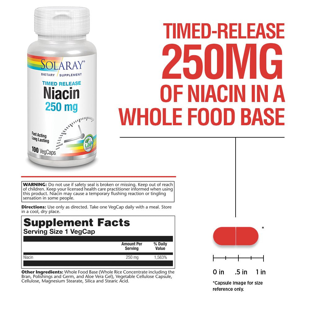 Solaray Niacin Timed-Release 250Mg, Vitamin B3 | Skin Health, Cardiovascular & Nervous System Support | 100Ct is backordered and will ship as soon as it is back in stock.