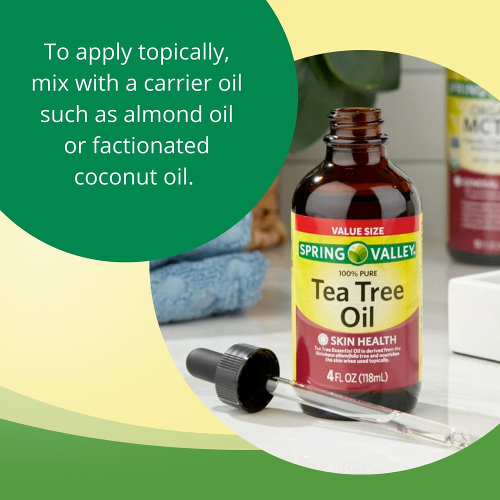 Spring Valley 100% Pure Tea Tree Oil for Skin Health, Liquid Supplement, 4 Fl Oz