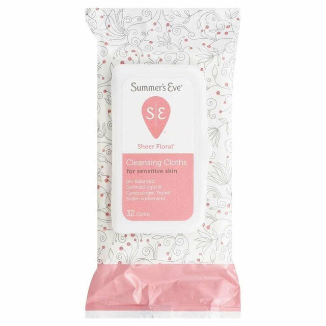 Summer'S Eve Cleansing Cloths for Sensitive Skin, Sheer Floral 32 Ea Pack of 6