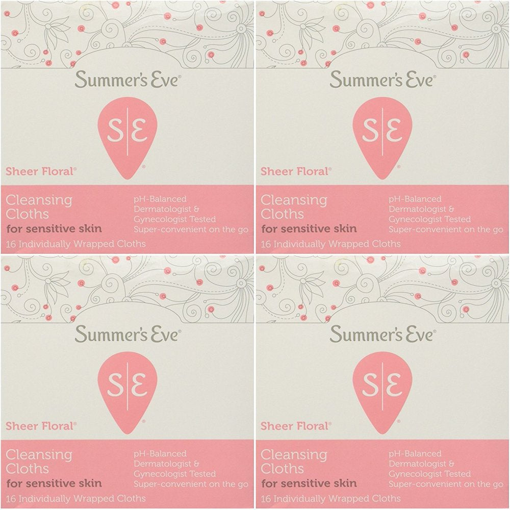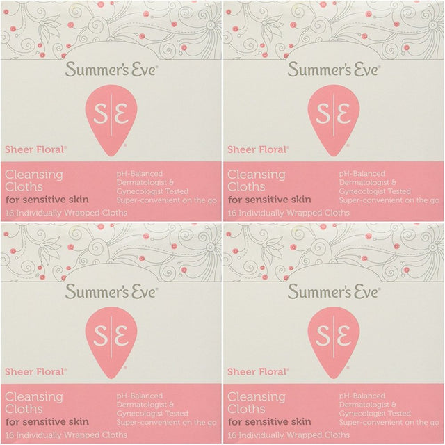 Summer'S Eve Eve Cleansing Cloths for Sensitive Skin, Sheer Floral 16 Ea (Pack of 4)