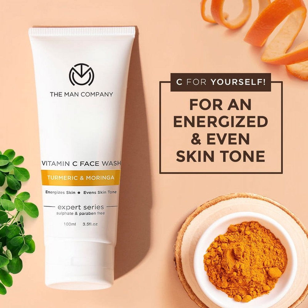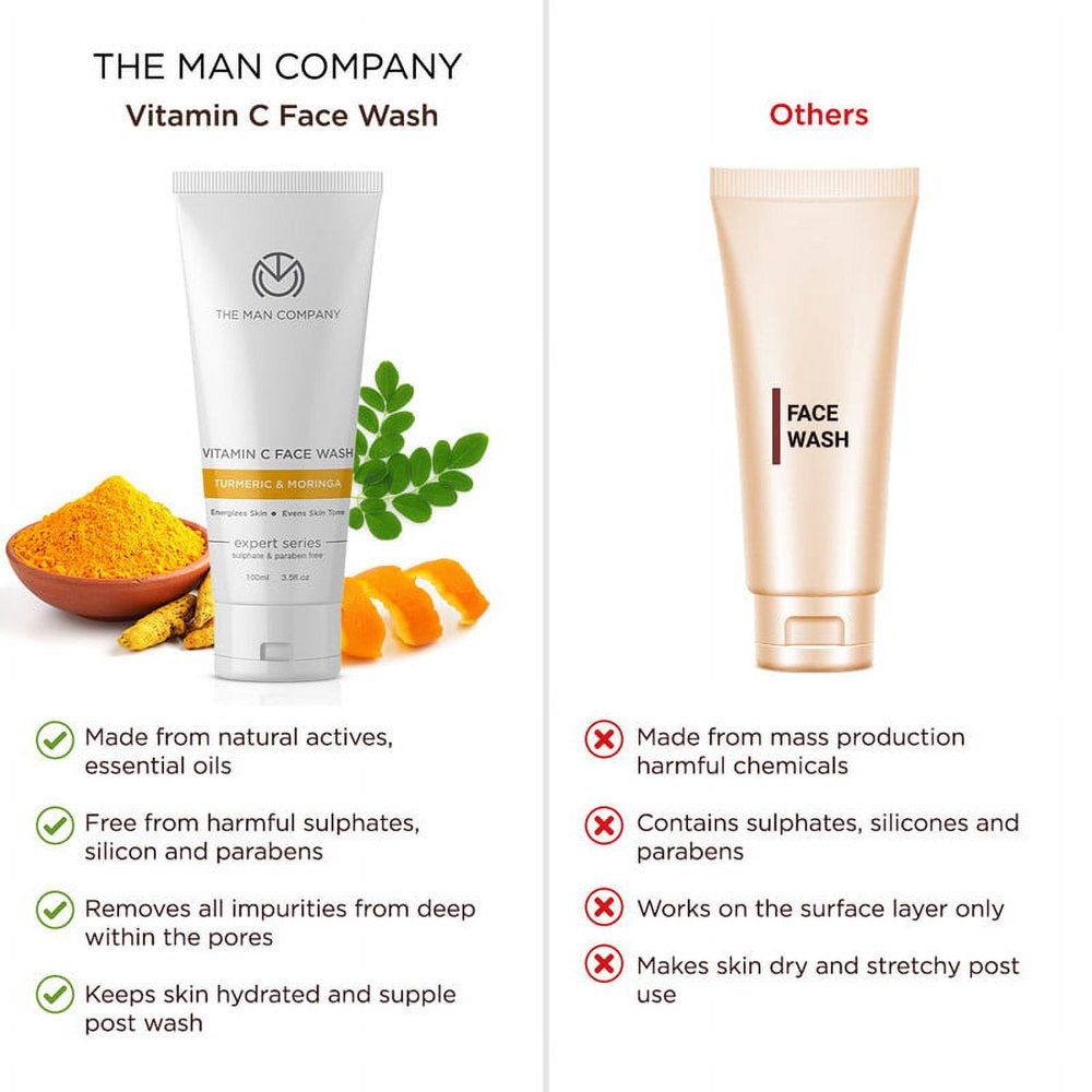 The Man Company Skin Brightening Vitamin C Face Wash with Turmeric and Niacinamide for Clean, Brighten, Soft & Supple Skin I Oil Free Look I Unclog Pores & Instant Glow | Paraben & SLS Free - 100Ml