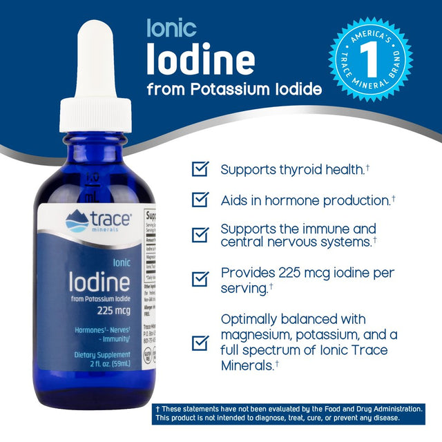 Trace Minerals | Ionic Iodine from Potassium Iodide | Supports Hormone Production, Nervous System Function, Skin Health, & Immunity | Non- Gmo, Vegan, Gluten Free | 2Oz 225 Mcg per Serving