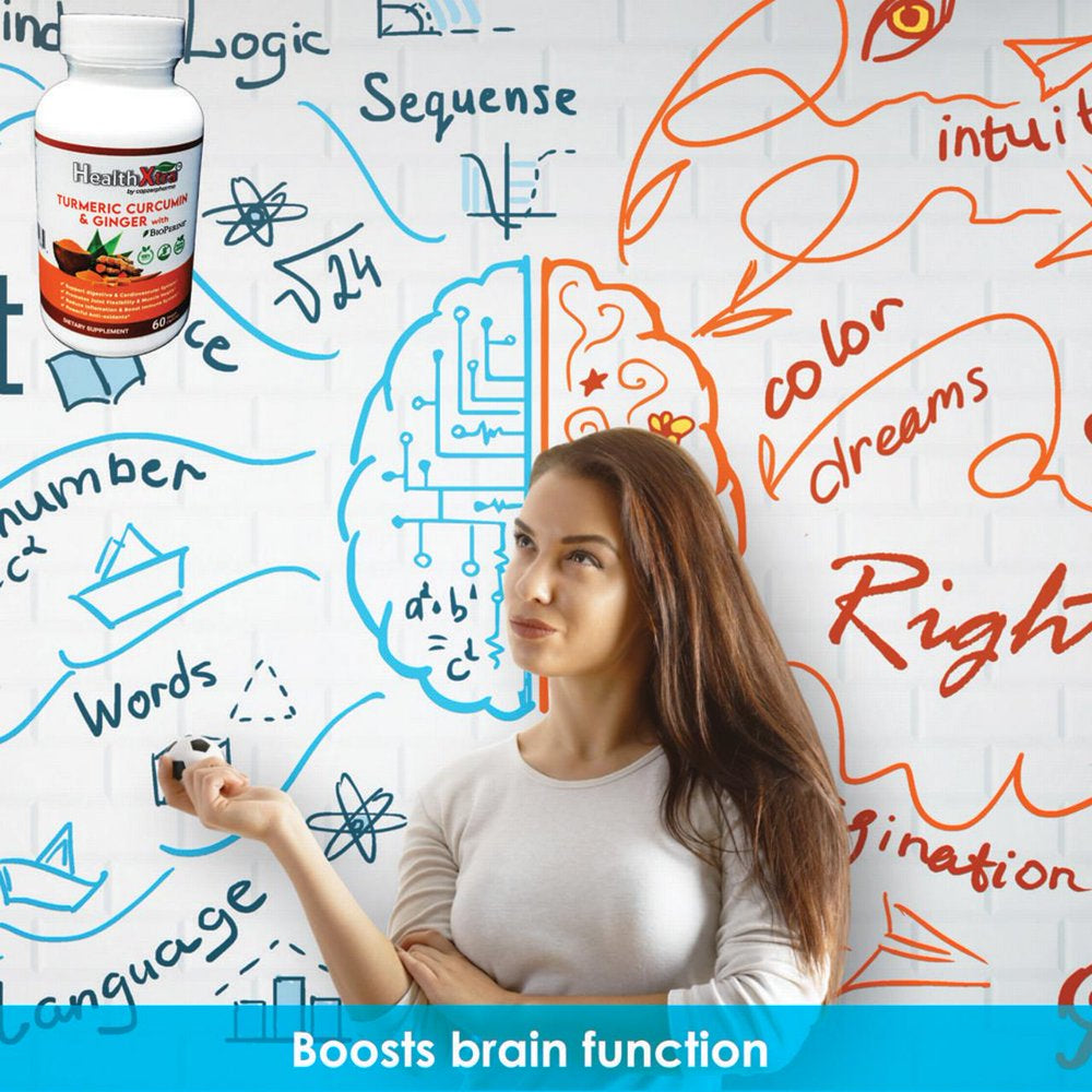 • Turmeric Curcumin enhanced with BioPerine: HealthXtra turmeric formula contains 1500mg of turmeric curcumin per serving with 95 percent standardized curcuminoids and 10mg of bioPerine (black pepper, curcumin with black pepper) to aid in absorption and bioavailability.