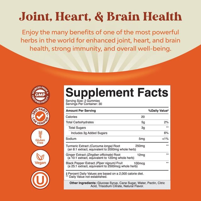 • Turmeric curcumin supplement - Turmeric powder is at the heart of our vitamin gummies for adults because we believe in the remarkable powers of turmeric extract and turmeric root for better health