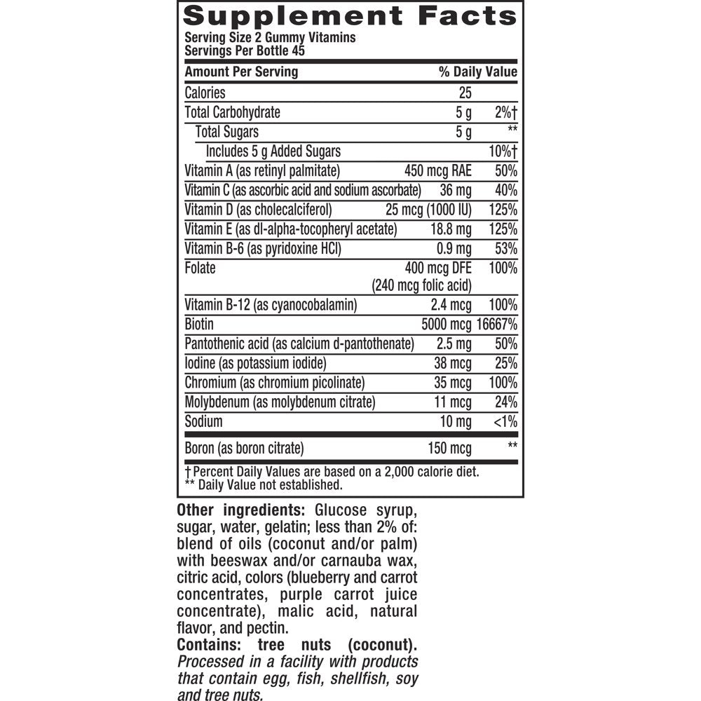 - DAILY BEAUTY SUPPORT: Unlock your inner beauty and support your beauty regimen with specially formulated beauty gummies that contain 500 mcg of biotin and 450mcg of retinol (Vitamin A RAE) per serving.