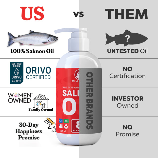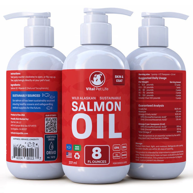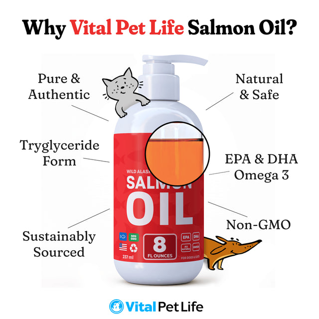 Vital Pet Life Salmon Oil for Dogs and Cats, Wild Alaskan Supports Healthy Skin Coat and Joints, Natural Allergy and Inflammation Defense, 8 Oz.