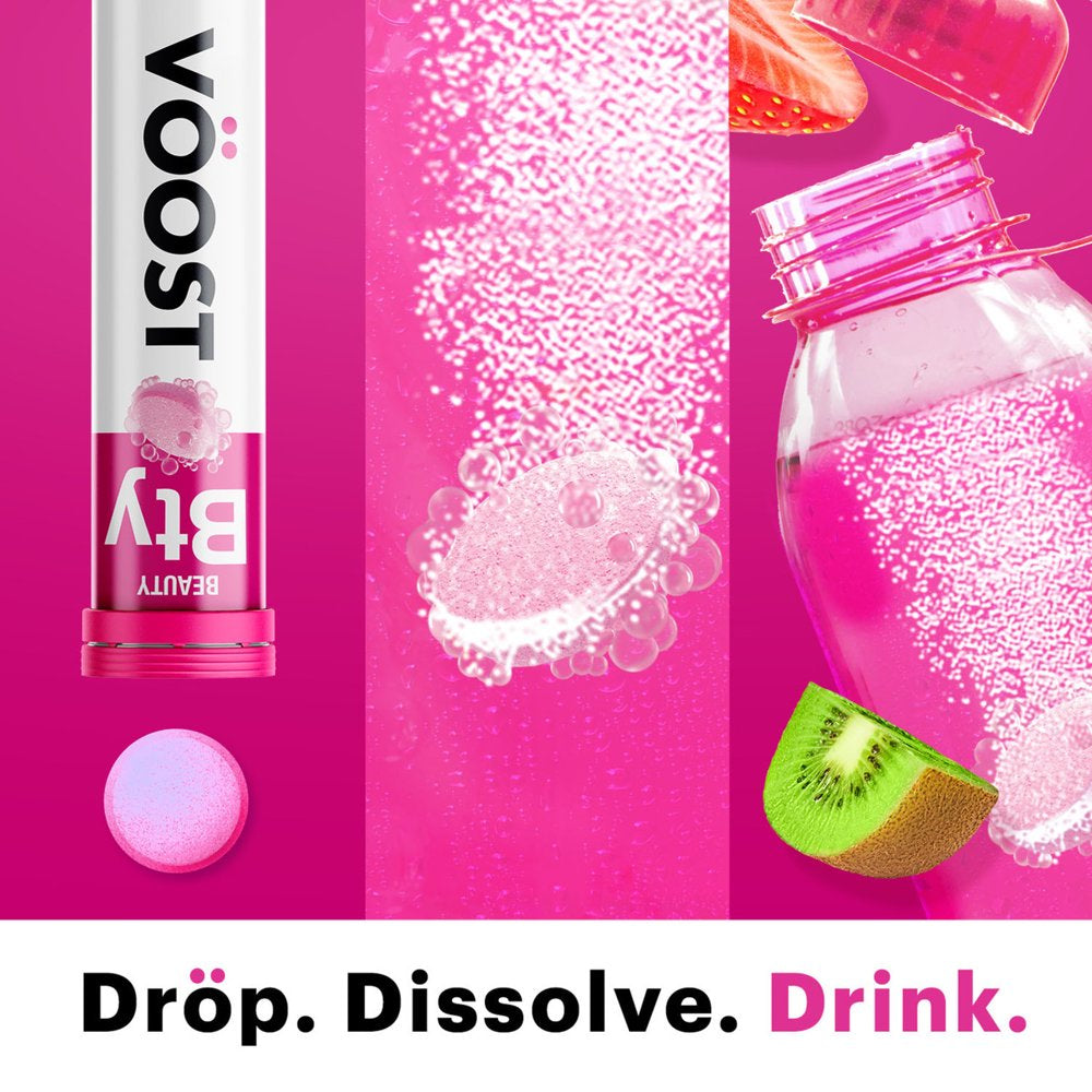 Voost Beauty Vitamin Supplement Effervescent Drink Tablet, Hair, Skin & Nails with Collagen, 20 Ct