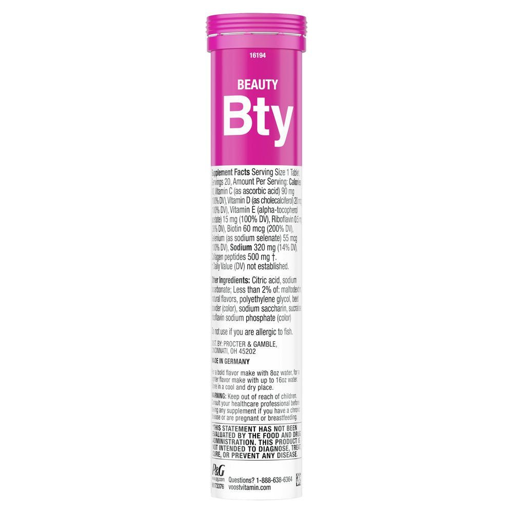 Voost Beauty Vitamin Supplement Effervescent Drink Tablet, Hair, Skin & Nails with Collagen, 20 Ct is backordered and will ship as soon as it is back in stock.