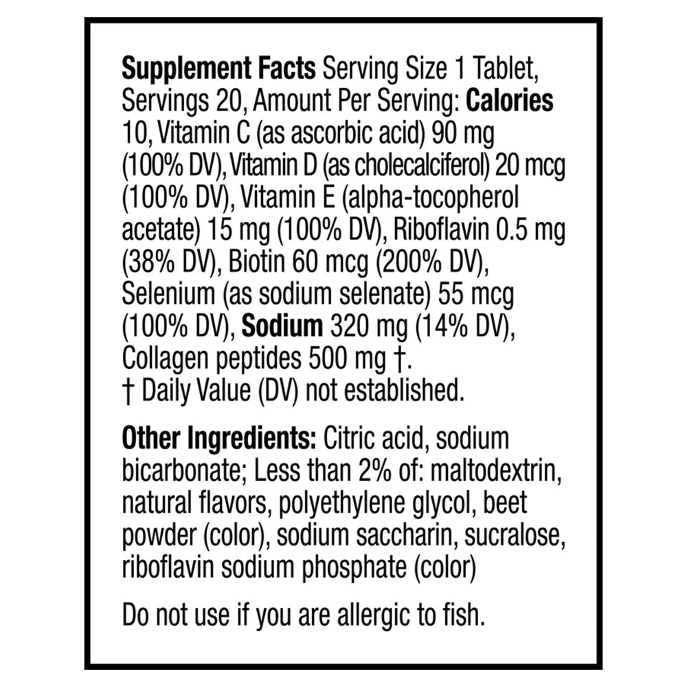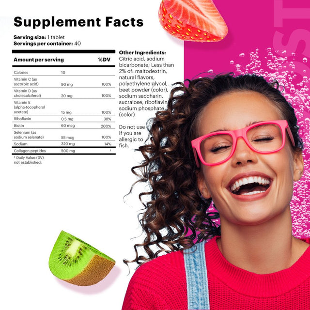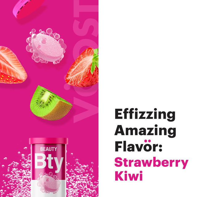 - DELICIOUS DAILY VITAMIN BOOST: Just one tablet dropped into the water you're already drinking turns it into a delicious lightly fizzy hair, skin, and nails vitamin drink with a delicious strawberry kiwi flavor