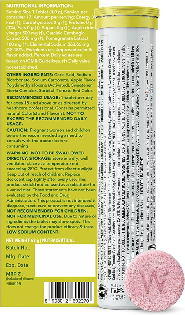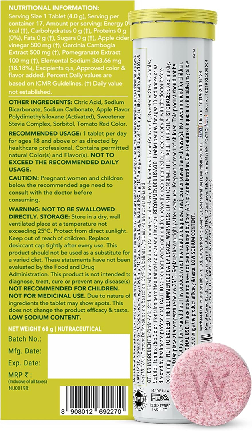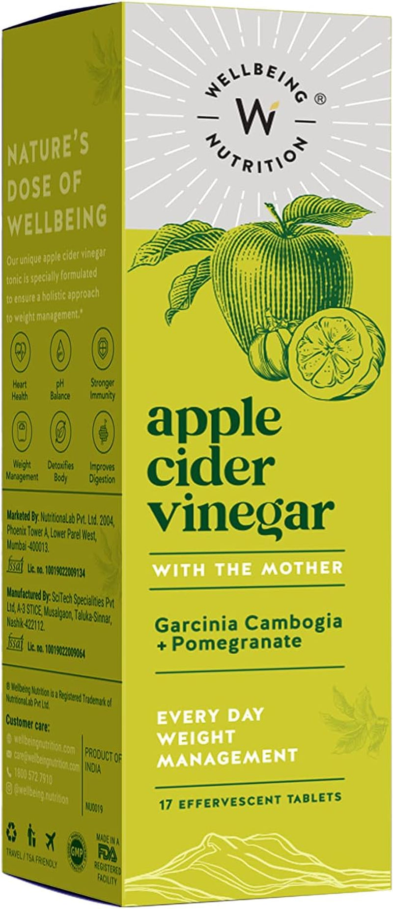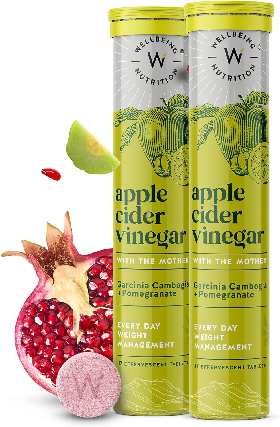 WELLBEING NUTRITION Apple Cider Vinegar with the Mother and Garcinia Cambogia, Pomegranate | Effective Weight Management, Gut Health and Skin Glow (34 Effervescent Tablets)