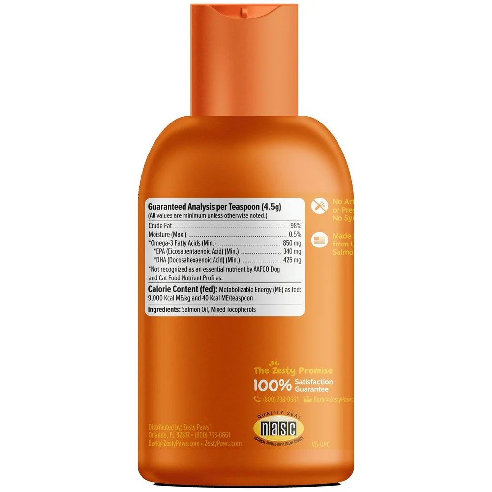 • Zesty Paws Pure Wild Alaskan Salmon Oil Liquid Food Supplement for Dogs or Cats, 8 fl oz