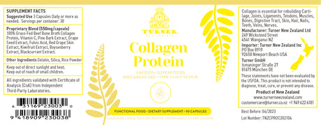 TURNER New Zealand Grass-Fed Collagen Protein Supplement for Skin, Hair & Nail, 90 Capsules
