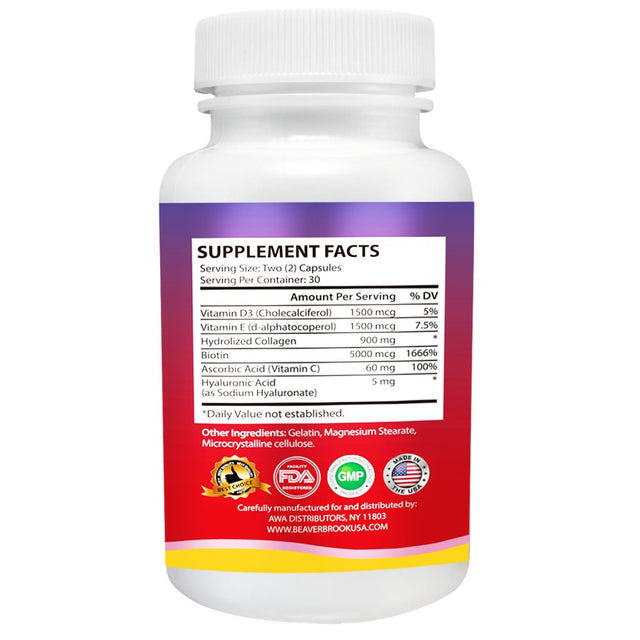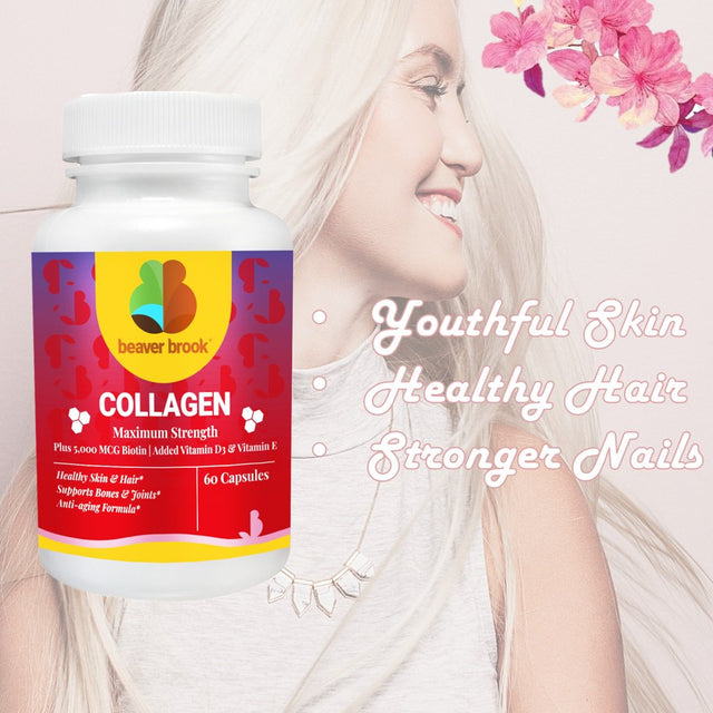 Beaver Brook Collagen Anti-Aging Formula Capsules Collagen 900Mg + 5,000 Mcg Biotin; Non-Gmo and Gluten-Free - 2 Pack