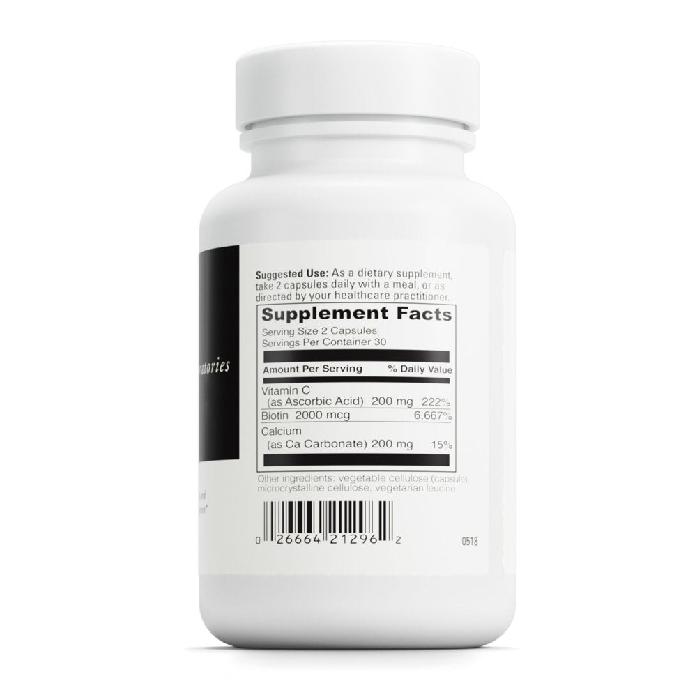 Vitamin C (as Ascorbic Acid) 200 mg 222%, Biotin 2000 mcg 6,667%, Calcium (as Ca Carbonate) 200 mg 15%. Other ingredients: vegetable cellulose (capsule), microcrystalline cellulose, vegetarian leucine./div>
