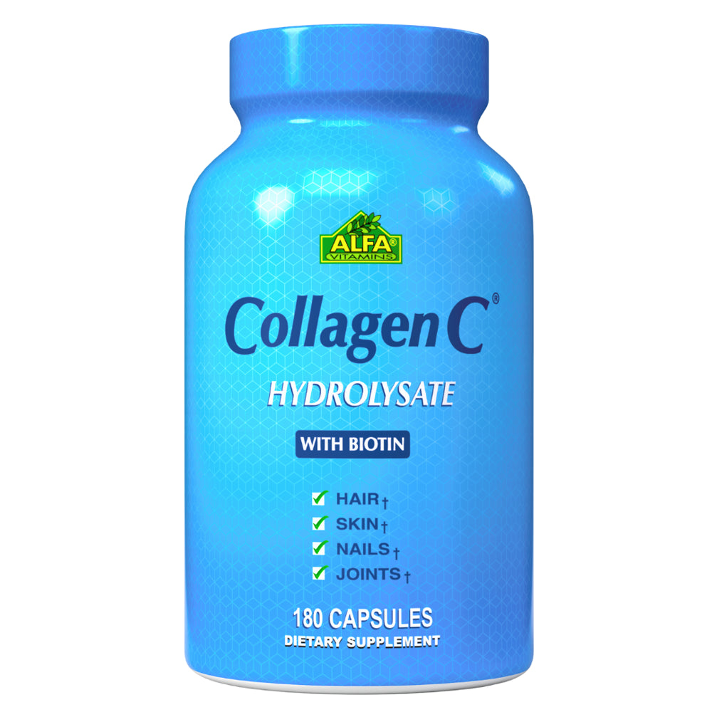 COLLAGENC HYDROLYSATE with BIOTIN for SKIN, HAIR, NAILS, & JOINTS by ALFA VITAMINS - 180 Capsules