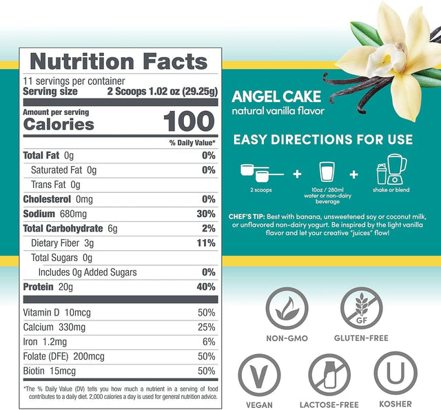 - 20g of delicious, light, and naturally flavored, vanilla angel cake soy protein powder packed with multifunctional benefits
