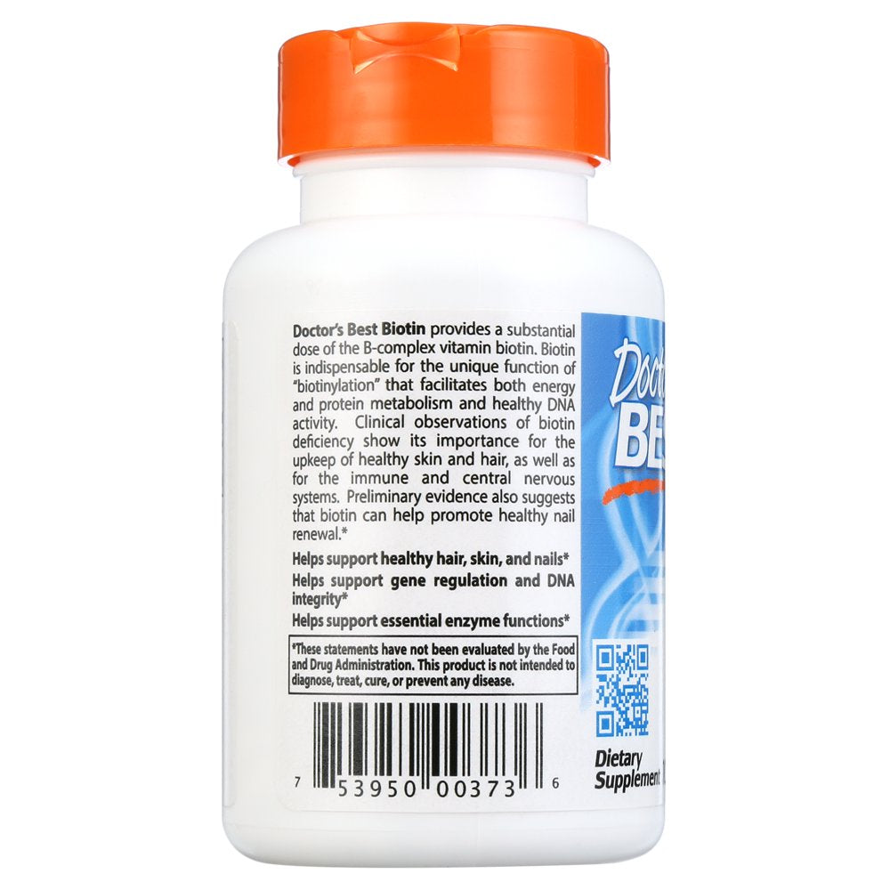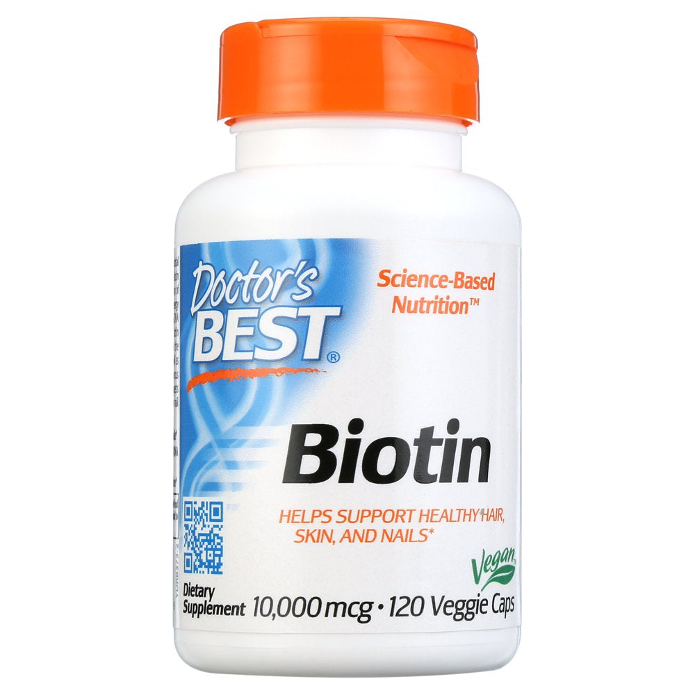 Doctor's Best - Biotin 10,000 mcg. - 120 Vegetarian Capsules Doctor's Best Biotin 10,000 mcg. provides a substantial dose of the B-complex vitamin biotin, indispensable for the unique function of “biotinylation” that facilitates both energy and protein metabolism and healthy DNA activity. Clinical observations of biotin deficiency show its importance for the upkeep of healthy skin and hair, as well as for the immune and central nervous systems.