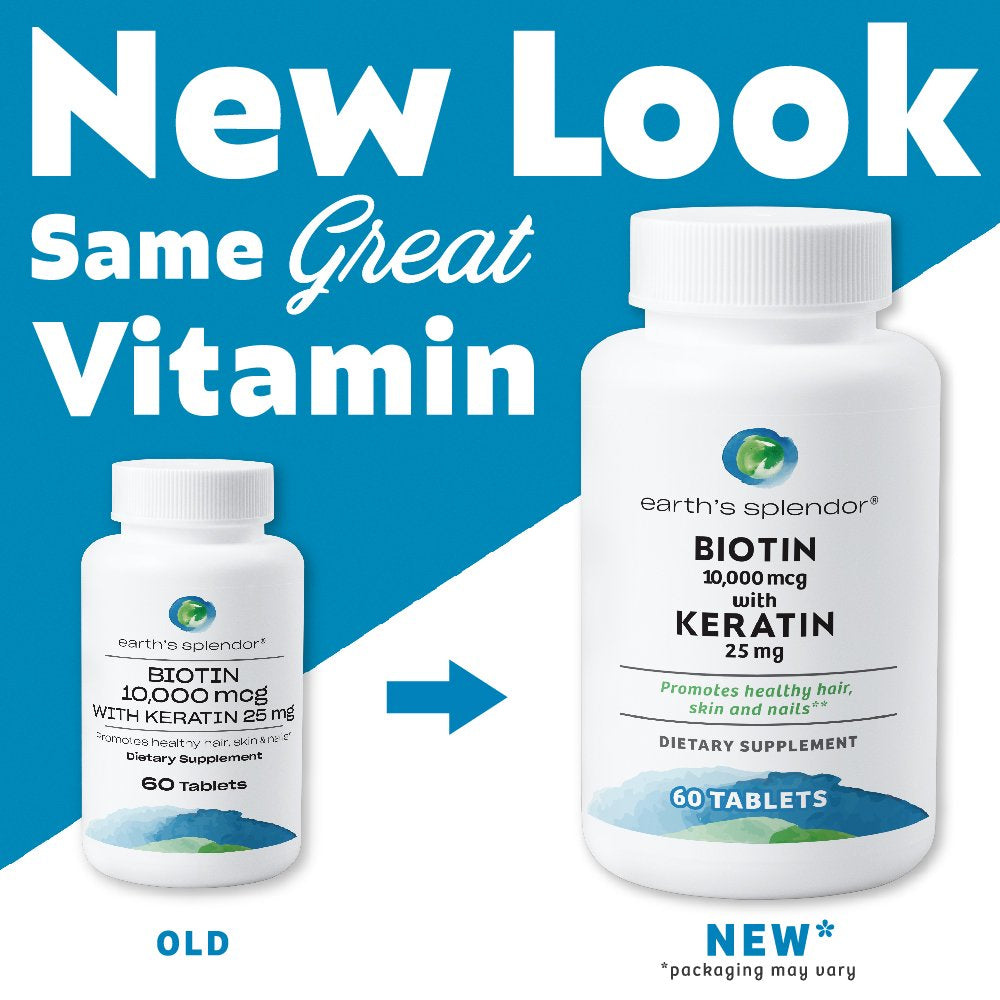 Earth's Splendor Biotin 10,000 mcg + Keratin 25mg, 60- Day Supply