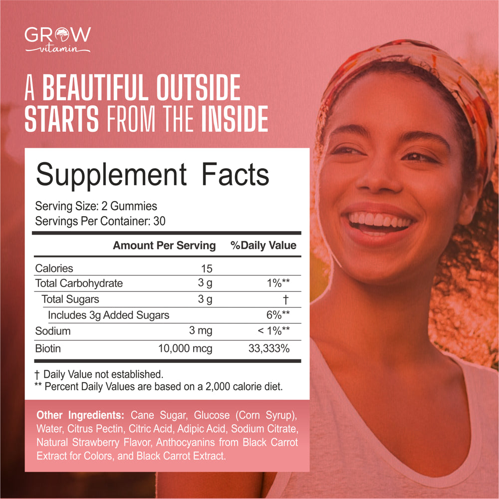 **Product Listing: Grow Vitamin - Hair Formula and Hair Growth** π± **Unlock the Secret to Luscious Locks with Grow Vitamin's Hair Formula!** Embark on a transformative journey towards healthier, more vibrant hair with our meticulously crafted Hair Formula. Packed with a potent blend of nourishing ingredients, each capsule is a powerhouse dedicated to enhancing your hair health. πΏ **Key Ingredients and Their Benefits:** **1. Iron (as Ferrous Fumarate) - 14.5 mg (81% DV):** - **Benefit:** Boosts oxygen circulation to the scalp, promoting healthy hair follicles and preventing hair loss. **2. Vitamin A (as Beta-Carotene) - 120 mcg RAE (13% DV):** - **Benefit:** Supports the production of sebum, a natural conditioner for a moisturized scalp and shiny, resilient hair. **3. Magnesium (as Magnesium Oxide) - 120 mg (29% DV):** - **Benefit:** Improves nutrient absorption, fostering an environment conducive to robust hair growth. **4. Vitamin C (as Ascorbic Acid) - 120 mg (133% DV):** - **Benefit:** Boosts collagen production, contributing to hair strength, elasticity, and protection against damage. **5. Zinc (as Zinc Oxide) - 7 mg (64% DV):** - **Benefit:** Balances oil production in the scalp, preventing dandruff and promoting a healthy environment for hair growth. **6. Vitamin D (as Cholecalciferol) - 20 mcg (100% DV):** - **Benefit:** Supports the creation of new hair follicles, preventing hair thinning and promoting overall hair density. **7. Manganese - 4 mg (174% DV):** - **Benefit:** Essential for the production of collagen and promotes healthy hair growth. **8. Vitamin E (as DL-Alpha Tocopheryl Acetate) - 14 mg:** - **Benefit:** Acts as a powerful antioxidant, protecting hair cells from damage and promoting a healthy scalp. **9. Biotin - 5,000 mcg (16,667% DV):** - **Benefit:** Known as the "beauty vitamin," Biotin improves hair texture, prevents breakage, and encourages hair growth. **10. Pantothenic Acid (B5) (as D-Calcium Pantothenate) - 30 mg (600% DV):** - **Benefit:** Strengthens hair follicles and nourishes the scalp, reducing hair thinning and promoting hair fullness. **11. Proprietary Blend (359 mg):** - A synergistic blend of Folate, PABA, Horsetail Extract, Fo-Ti, Bamboo Extract, Stinging Nettle, Chinese Peony, Spirulina, Saw Palmetto, Plant Sterols, Alfalfa, and Barley Grass for comprehensive hair support. π **Experience the Difference:** Grow Vitamin's Hair Formula isn't just a supplement; it's a commitment to your hair's well-being. Embrace the power of nature's finest ingredients and unlock the door to stronger, more radiant hair. Elevate your hair care routineβorder now and let your hair's true beauty shine! ππΏ