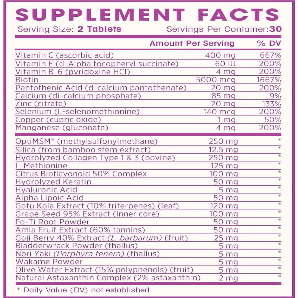 • 28 KEY ACTIVE INGREDIENTS for gorgeous, youthful hair, nails and skin replaces nutrients and minerals you lose naturally every day, supports improved energy essential metabolic processes. Promotes healthy skin that is youthful and radiant, thickening of hair follicles, stronger and thicker nails, makes your appearance more youthful and vital, reverses many outward signs of aging, and supports hair growth for thinning hair in both men and women.