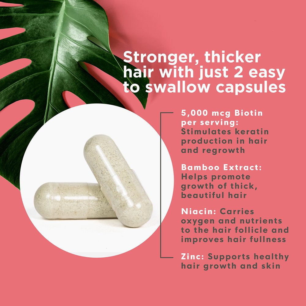 In each serving (2 capsules) you have a whopping 5000mcg of Biotin, which is one of the reasons you may also notice more nourished skin and stronger nails in addition to your new vibrant hair.