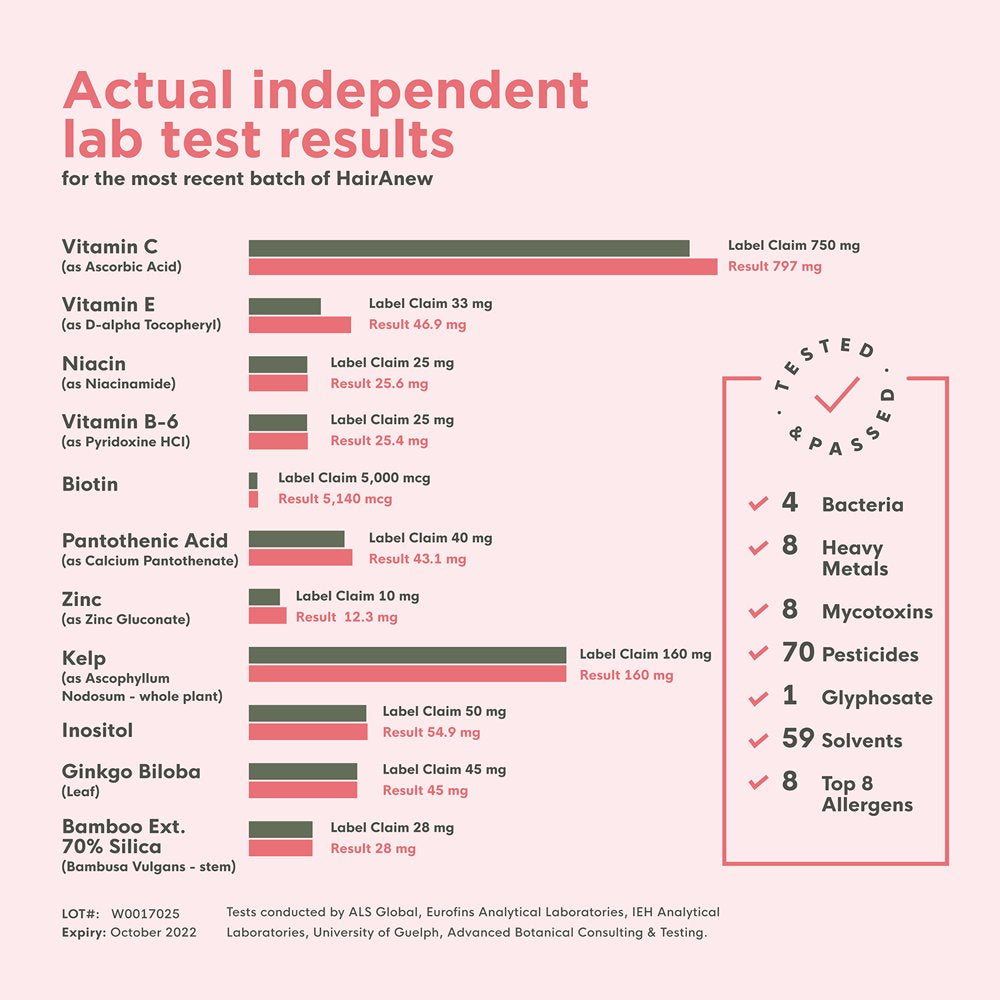 We care deeply about our products and our customers, which is why we go to the extent of sending each batch of HairAnew off to an independent laboratory after production. They test to make double sure our final ingredients match the label and that our product is completely safe and free of any harmful bacteria or heavy metals.?