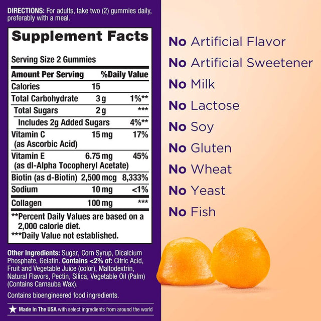 Nature'S Bounty Hair, Skin, & Nail Health with Biotin & Collagen Dietary Supplement Gummies, Orange, 80 Ea (Pack of 3) is backordered and will ship as soon as it is back in stock.