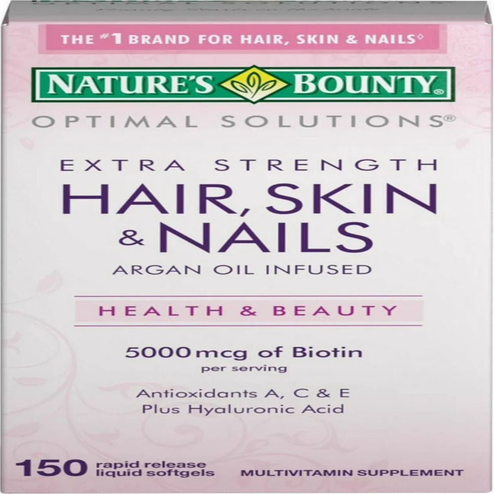 Nature'S Bounty Optimal Solutions Extra Srength Hair Skin & Nails 5000 Mcg of Biotin, Softgels 150 Ea (Pack of 6)