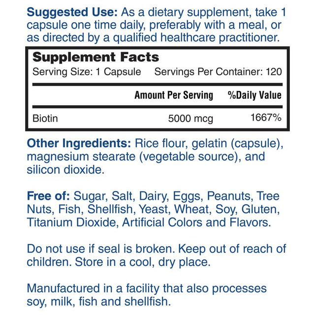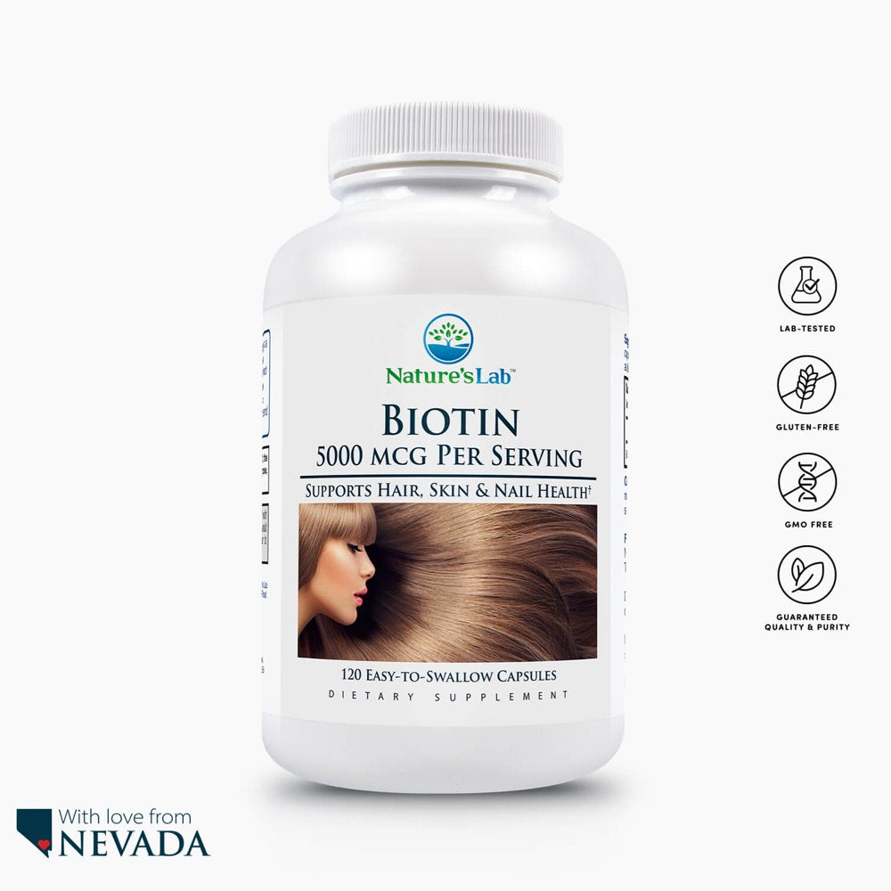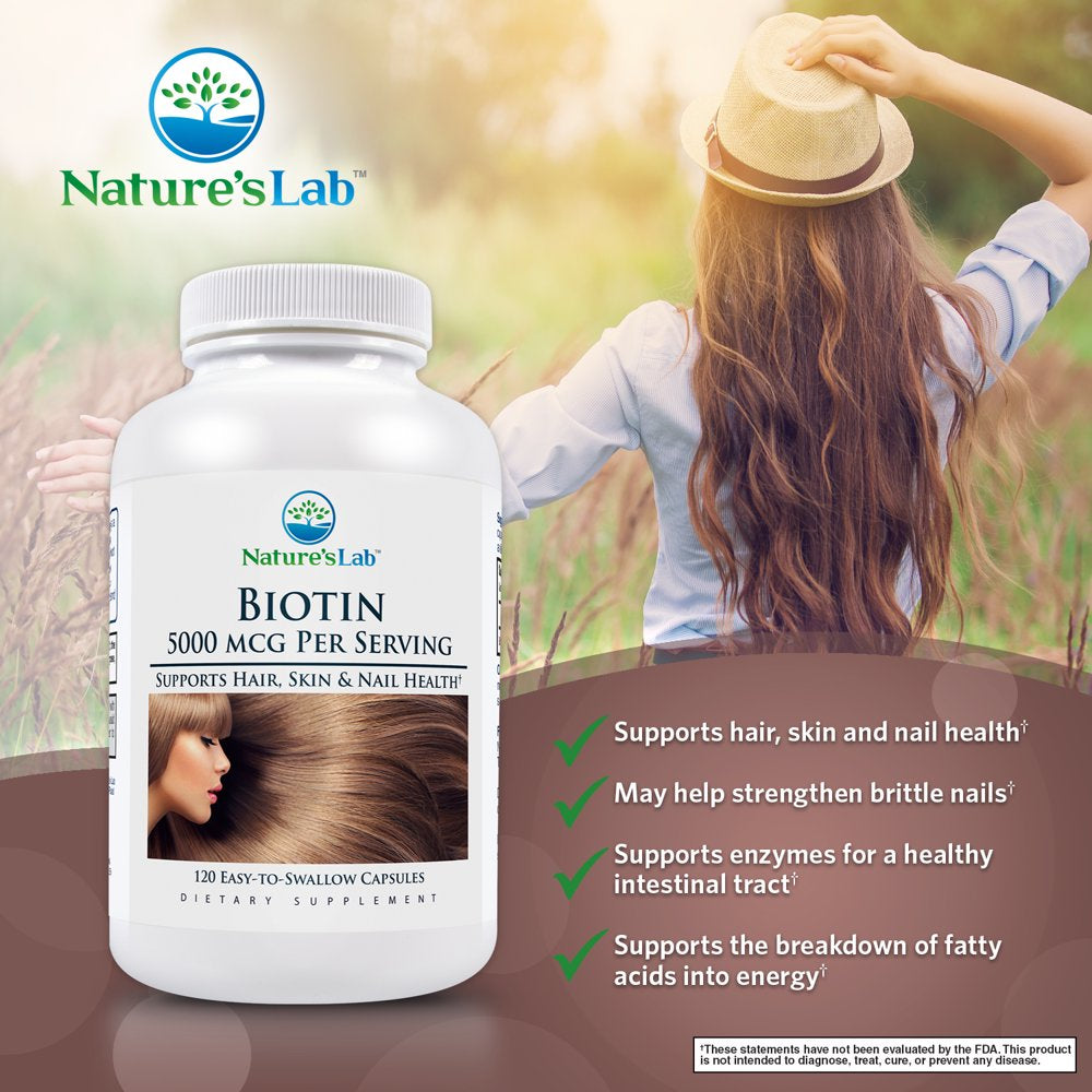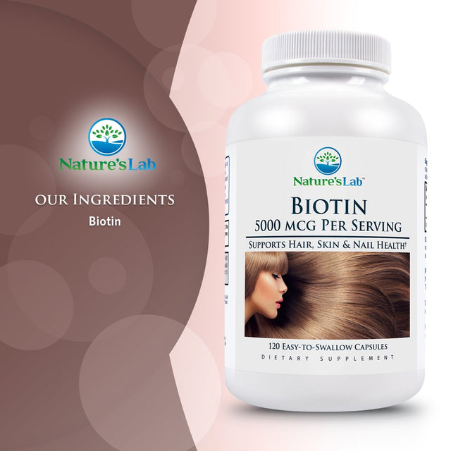 Nature'S Lab Biotin 5000 Mcg - 120 Capsules (4 Month Supply) - Promotes Healthy Hair, Skin & Nails