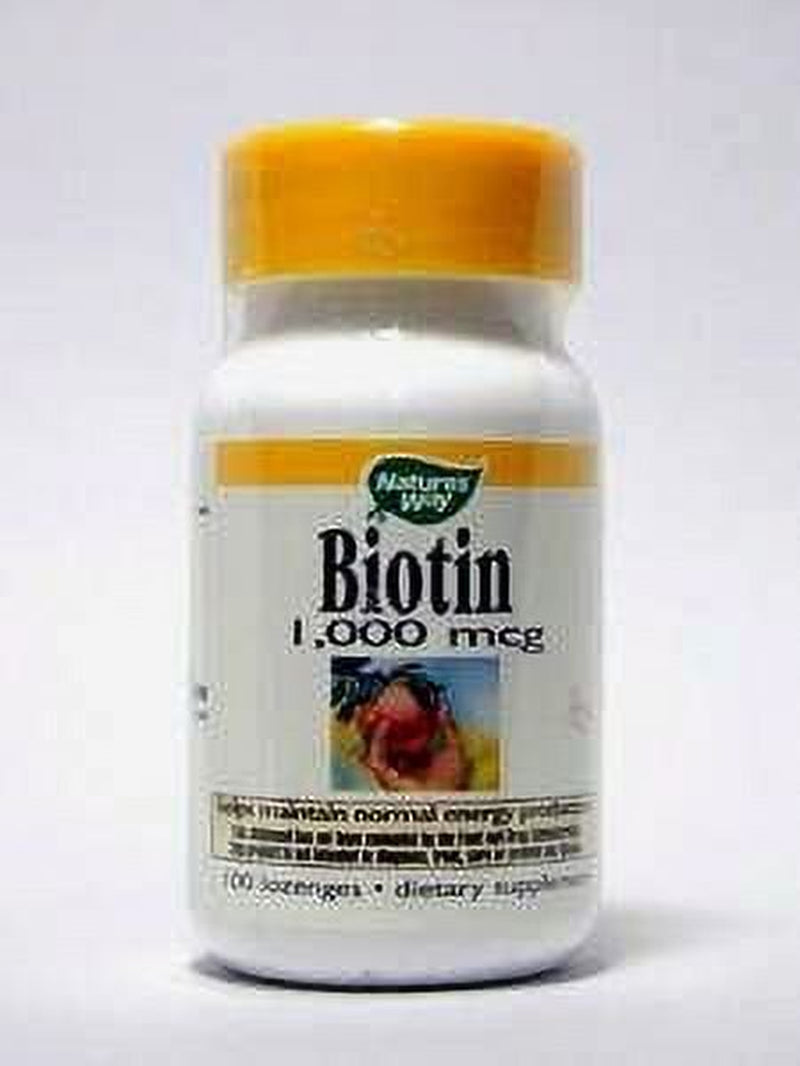 Nature's Way - Biotin 1000 mcg. - 100 Lozenges Nature's Way Biotin is an enzyme cofactor that assists in the release of energy from carbohydrates and in the production of fatty acids. Biotin also assists in activating the energy transfer molecule ATP. Biotin supplements are often recommended as a natural product to counteract the problem of hair loss in both children and adults. The signs and symptoms of biotin deficiency include hair loss which progresses in severity to include loss of eye