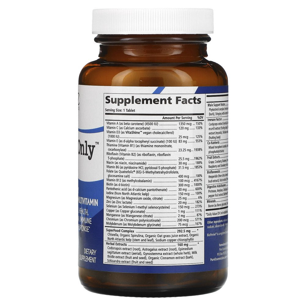 One N Only Multivitamin for Men - One a Day Whole Food Supplement with Superfoods, Minerals, Enzymes, Vitamin D, D3, B12, Biotin by Pure Essence - 90 Tablets