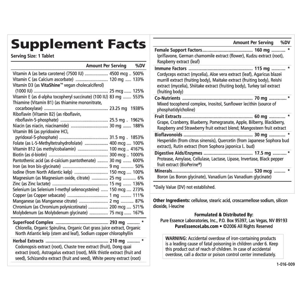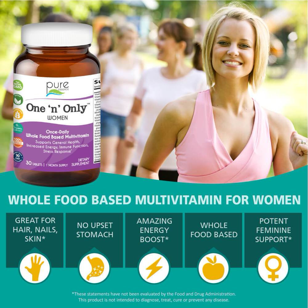 One N Only Multivitamin for Women - One a Day Whole Food Supplement with Superfoods, Minerals, Enzymes, Vitamin D, D3, B12, Biotin by Pure Essence - 30 Tablets