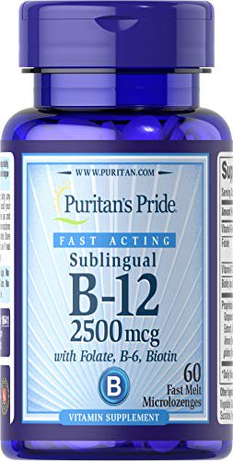 Puritan'S Pride Vitamin B-12 2500 Mcg Sublingual with Folic Acid, Vitamin B-6 and Biotin-60 Microlozenges