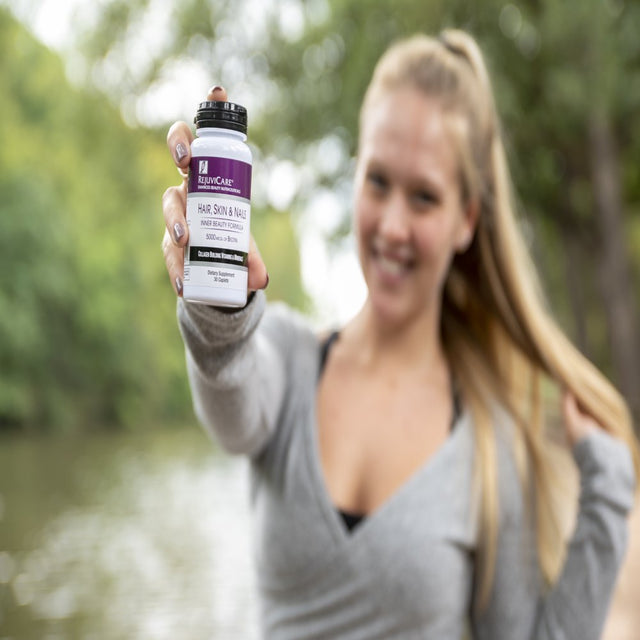 - COLLAGEN, BIOTIN & PROTEIN FOR HEALTHY SKIN & HAIR. Collagen is an important protein that provides amino acids and building blocks for beautiful and healthy skin, nails and hair. Biotin promotes thicker and stronger hair, while supporting healthy and strong nails. Rejuvicare Liquid Collagen Beauty Formula combines collagen peptides with biotin and amino acids to create an advanced beauty formula.