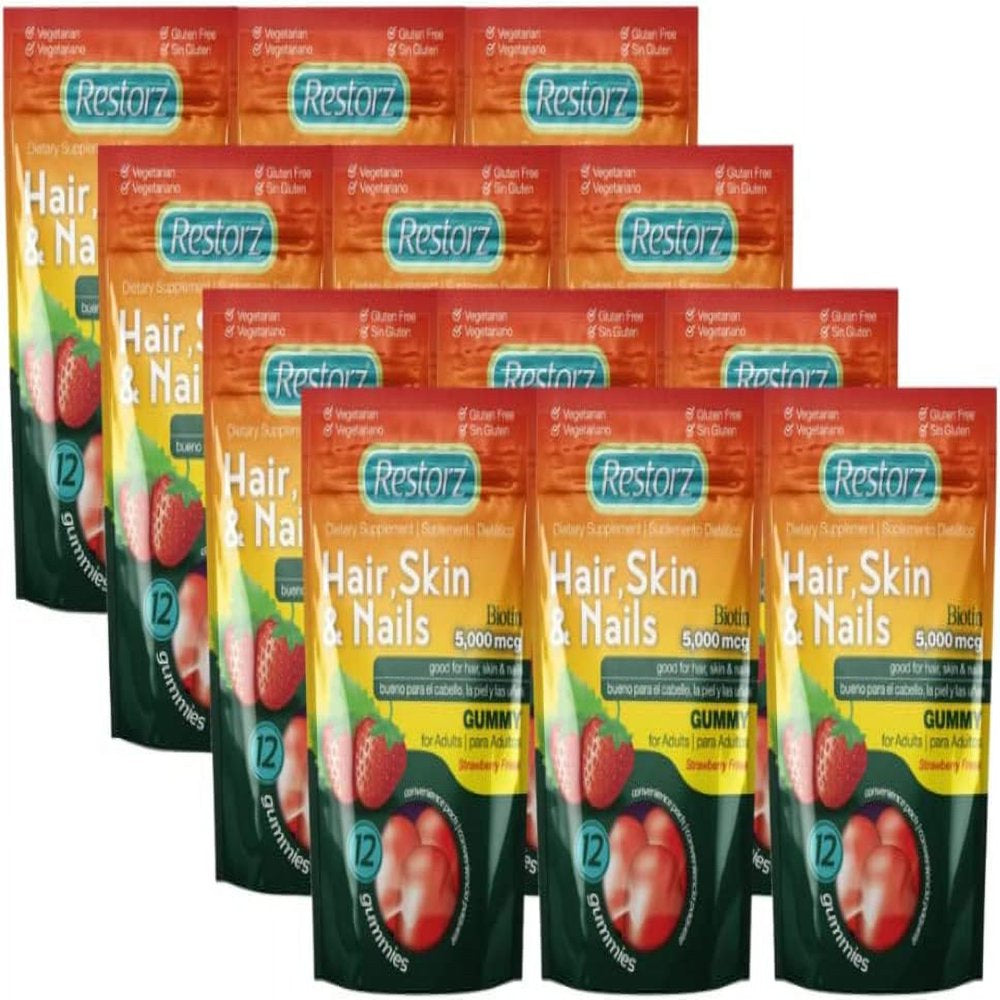 Restorz Hair, Skin, and Nails Biotin Gummy Vitamins, Strawberry Flavor (12-Pack)