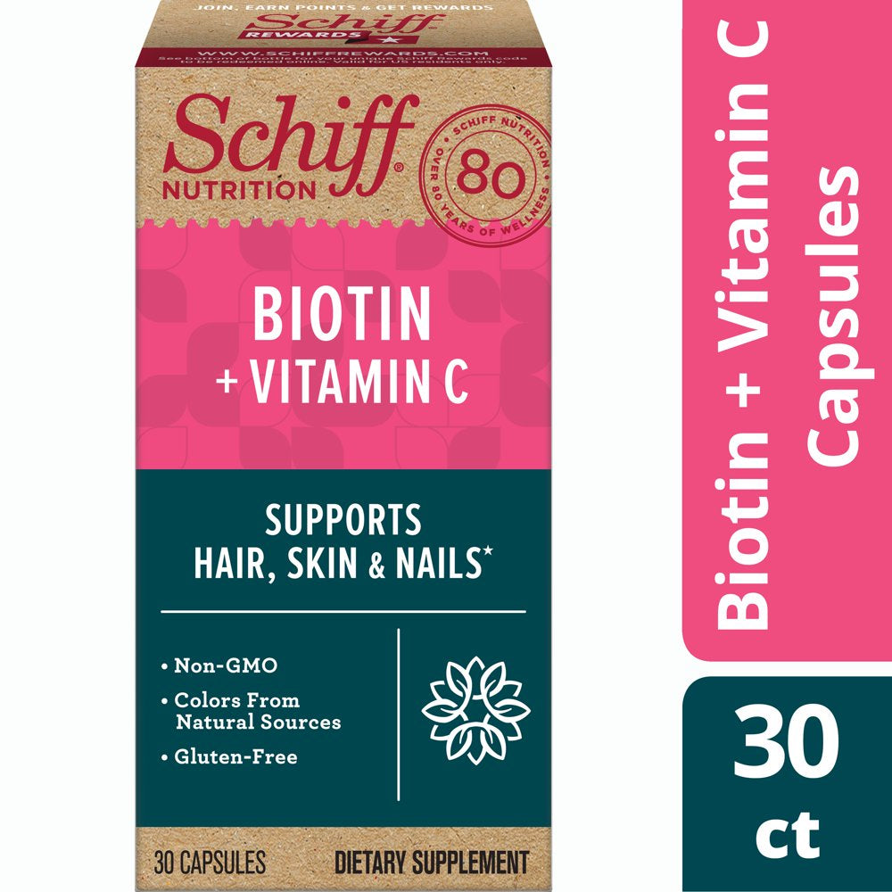 Schiff Biotin + Vitamin C Capsules (30 Count), Gluten-Free & Non-Gmo Supplement That Supports Hair, Skin & Nails and Natural Collagen Production٭