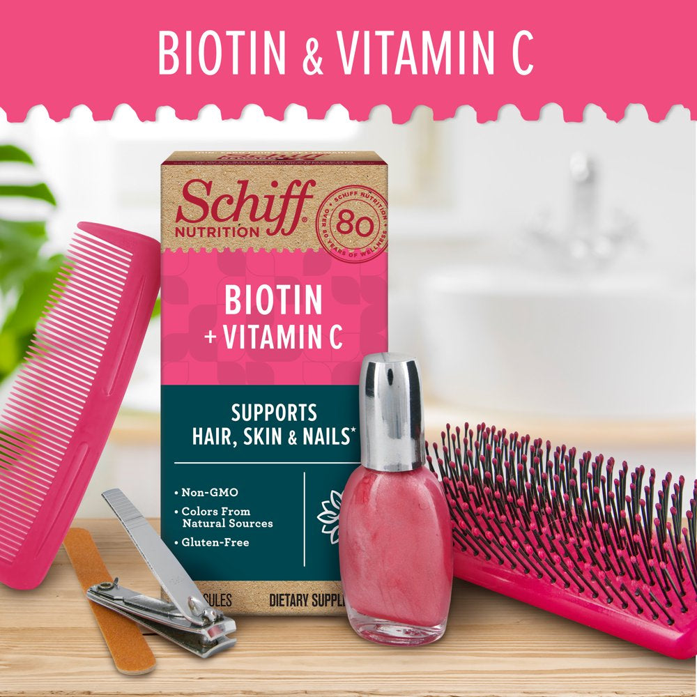 • WHY TO USE & TRUST SCHIFF BIOTIN PLUS VITAMIN C: Part of the Vitamin B family, Biotin serves a vital role in day-to-day metabolism. It is also a key vitamin needed for healthy hair, skin and nails.٭