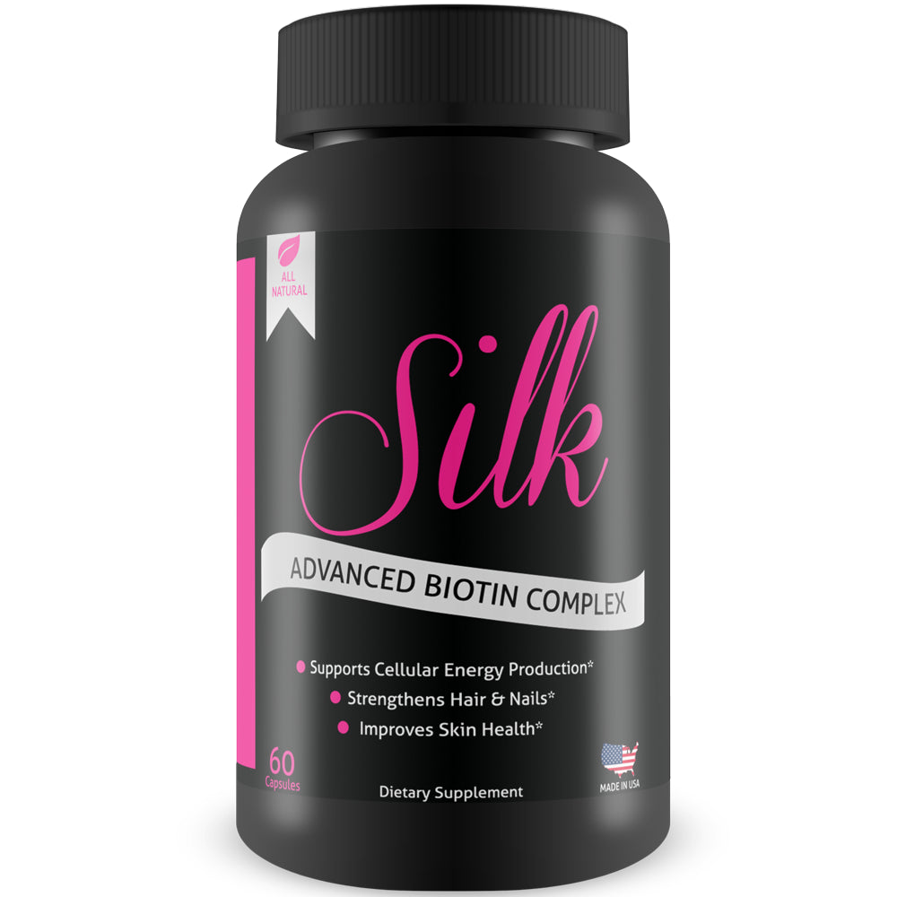 Unlock your inner beauty with Silk Advanced Biotin Complex! STRENGTHEN AND PROMOTE HAIR GROWTH NATURALLY. Our potent hair regrowth supplement promotes stronger, thicker, and healthier hair regardless of stress levels or hormonal imbalance. Use our pure hair skin and nail vitamin as an all-natural solution for a thinning hair supplement. Take only as directed.