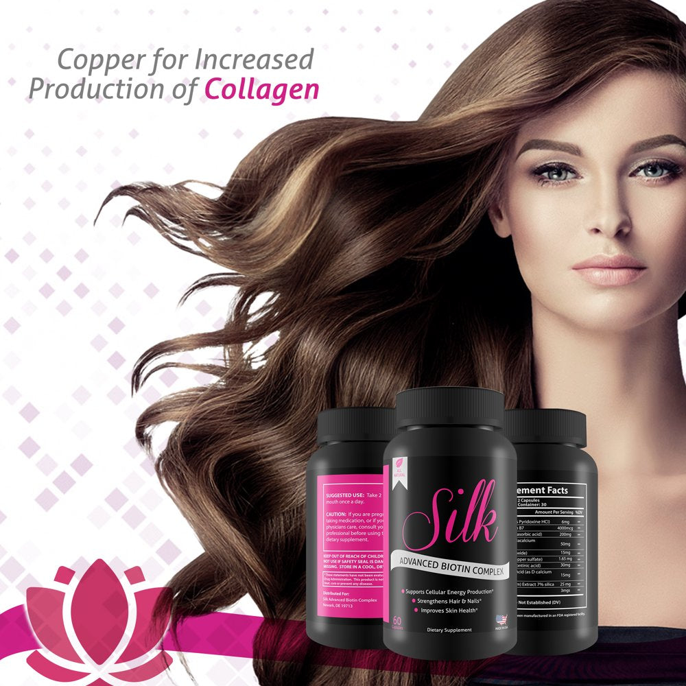 Silk Advanced Biotin Complex - Promotes Stronger, Longer Hair - Healthier Skin - Ultimate Nail Strength - 60 Capsules