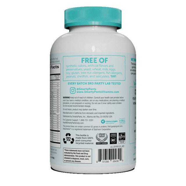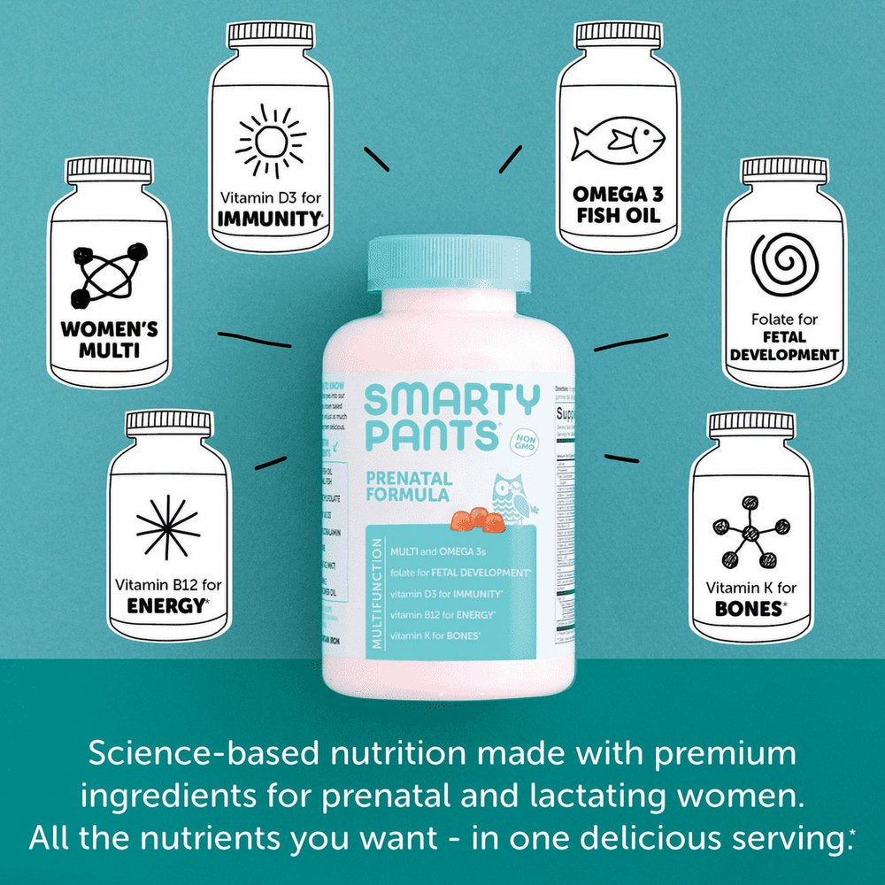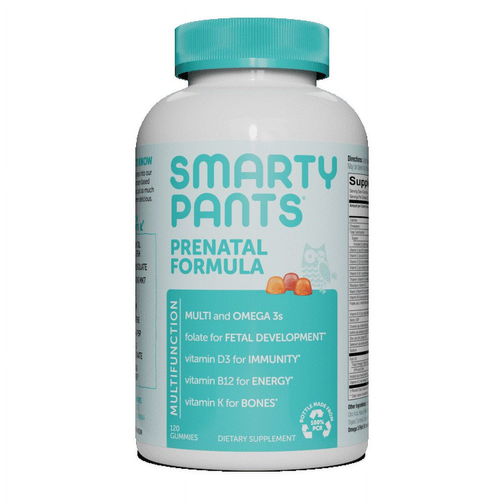 Smartypants Prenatal Daily Gummy Multivitamin: Biotin, Vitamin C, D3, E, B12, A, Omega 3 (DHA/EPA) Fish Oil, Gluten Free, Zinc, Selenium, Methyl Folate, 120 Count (30 Day Supply) - Packaging May Vary