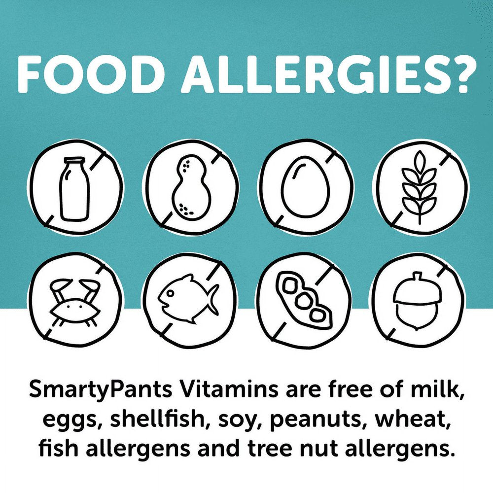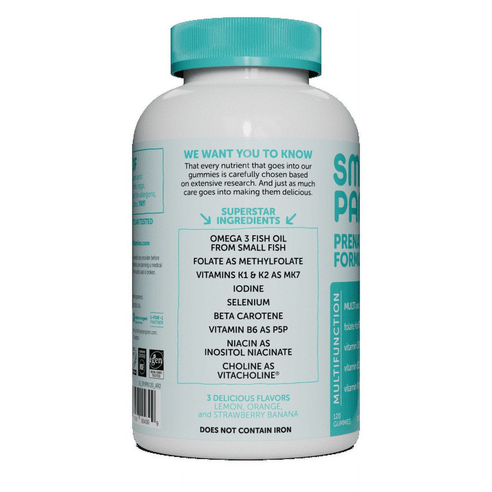 3 DELICIOUS FLAVORS LEMON, ORANGE, AND STRAWBERRY BANANA***CLEAN LABEL PROJECT? PURITY AWARD***EVERY BATCH 3RD PARTY LAB TESTED***FOR CUSTOMER SUPPORT: 1-888-751-2291 HOOT@SMARTYPANTSCORP.COM***MULTIFUNCTION MULTI AND OMEGA 3S FOLATE FOR FETAL DEVELOPMENT VITAMIN D3 FOR IMMUNITY* VITAMIN B12 FOR ENERGY* VITAMIN K FOR BONES****OMEGA 3 FISH OIL FROM SUSTAINABLE FISHERIES, SMALL FISH ONLY***SUPERSTAR INGREDIENTS OMEGA 3 FISH OIL FROM SMALL FISH FOLATE AS METHYLFOLATE VITAMINS K1 & K2 AS MK7 IODINE SELENIUM BETA CAROTENE VITAMIN B6 AS P5P NIACIN AS INOSITOL NIACINATE CHOLINE AS VITACHOLINE?***WE WANT YOU TO KNOW THAT EVERY NUTRIENT THAT GOES INTO OUR GUMMIES IS CAREFULLY CHOSEN BASED ON EXTENSIVE RESEARCH. AND JUST AS MUCH CARE GOES INTO MAKING THEM DELICIOUS.