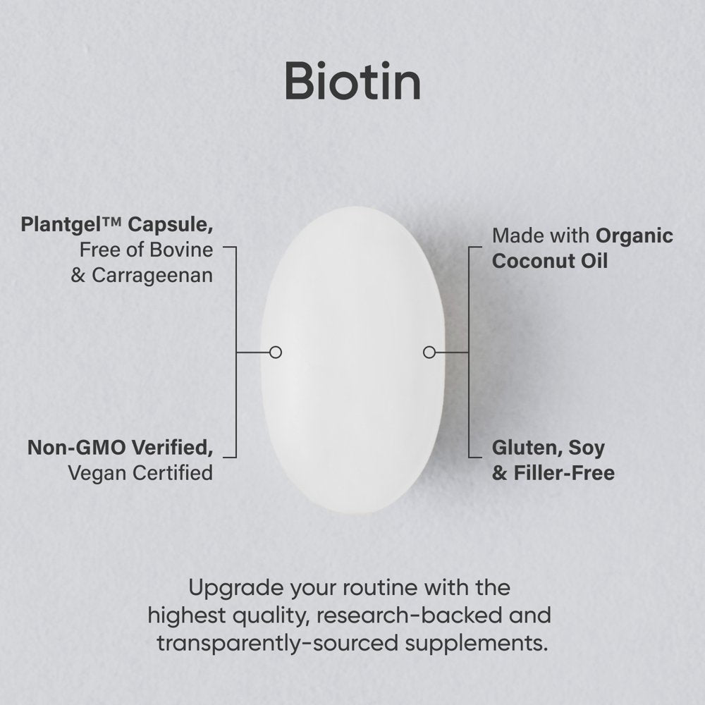 - POTENT AND POWERFUL: Biotin, also known as vitamin B7, is an essential micronutrient involved in Keratin synthesis. Our Biotin vitamins support your hair and skin and feature 2,500 mcg of this essential piece of the vitamin B complex with cold-pressed organic virgin coconut oil. Our easy-to-swallow Biotin supplement is a great way to add this B vitamin to your diet. Banish bad hair days and feel good about the skin you're in with our Biotin vitamins!
